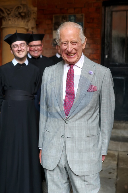 BIRMINGHAM, ENGLAND - SEPTEMBER 03: King Charles III laughs with Fathers during a tour of The Oratory of St. Philip Neri following the canonisation of Cardinal John Henry Newman on September 03, 2025 in Birmingham, England., Credit:Chris Jackson / Avalon