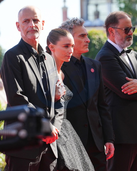 James Wilson, Rooney Maara, Joaquin Phoenix and Andrea Romeo attending the The Voice Of Hind Rajab red carpet during the 82nd Venice International Film Festival on September 3, 2025 in Venice, Italy. (Photo by Lucia Sabatelli / Bestimage) EDITORIAL USE ONLY