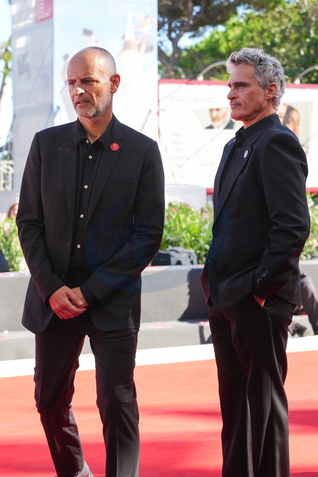 James Wilson and Joaquin Phoenix attending the The Voice Of Hind Rajab red carpet during the 82nd Venice International Film Festival on September 3, 2025 in Venice, Italy. (Photo by Lucia Sabatelli / Bestimage) EDITORIAL USE ONLY