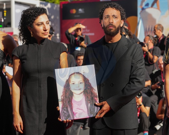 Clara Khoury, Motaz Malhees attending the The Voice Of Hind Rajab red carpet during the 82nd Venice International Film Festival on September 3, 2025 in Venice, Italy. (Photo by Lucia Sabatelli / Bestimage) EDITORIAL USE ONLY