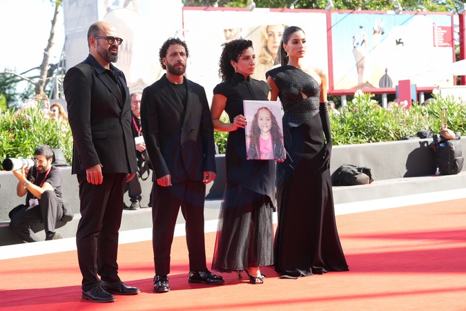 Amer Hlehel, Motaz Malhees, Clara Khoury, Saja Kilani attending the The Voice Of Hind Rajab red carpet during the 82nd Venice International Film Festival on September 3, 2025 in Venice, Italy. (Photo by Lucia Sabatelli / Bestimage) EDITORIAL USE ONLY