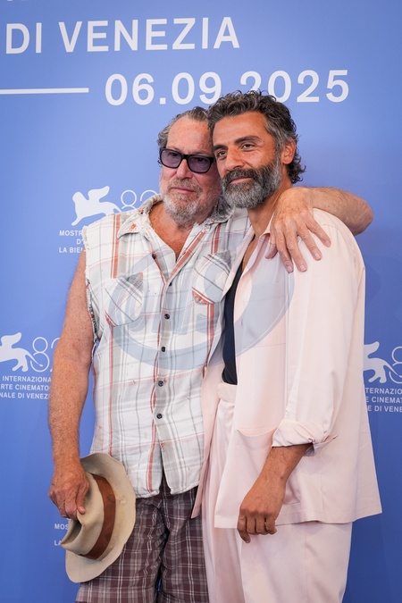 Julian Schnabel and Oscar Isaac attend the "In The Hand Of Dante" photocall during the 82nd Venice International Film Festival in Venice, Italy on 03 September 2025., Credit:Stefano Costantino TTL / Avalon