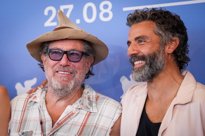 Julian Schnabel and Oscar Isaac attend the "In The Hand Of Dante" photocall during the 82nd Venice International Film Festival in Venice, Italy on 03 September 2025., Credit:Stefano Costantino TTL / Avalon