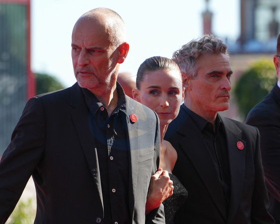 James Wilson, Rooney Maara, Joaquin Phoenix attending the The Voice Of Hind Rajab red carpet during the 82nd Venice International Film Festival on September 3, 2025 in Venice, Italy. (Photo by Lucia Sabatelli / Bestimage) EDITORIAL USE ONLY