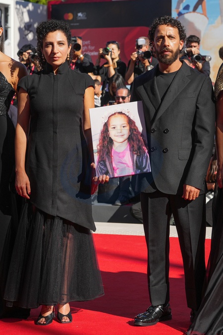 Clara Khoury, Motaz Malhees attending the The Voice Of Hind Rajab red carpet during the 82nd Venice International Film Festival on September 3, 2025 in Venice, Italy. (Photo by Lucia Sabatelli / Bestimage) EDITORIAL USE ONLY