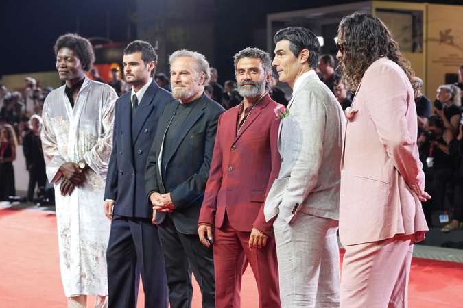 Benjamin Clementine, Franco Nero, Oscar Isaac Louis Cancelmi, Louise Kugelberg and and Jason Momoa attending the Cartier Glory To The Filmmaker Award 2025 and the In the Hand of Dante red carpet during the 82nd Venice International Film Festival on September 3, 2025 in Venice, Italy. (Photo by Lucia Sabatelli / Bestimage) EDITORIAL USE ONLY