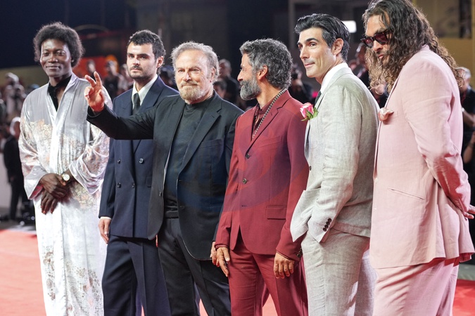 Benjamin Clementine, Franco Nero, Oscar Isaac Louis Cancelmi, Louise Kugelberg and and Jason Momoa attending the Cartier Glory To The Filmmaker Award 2025 and the In the Hand of Dante red carpet during the 82nd Venice International Film Festival on September 3, 2025 in Venice, Italy. (Photo by Lucia Sabatelli / Bestimage) EDITORIAL USE ONLY