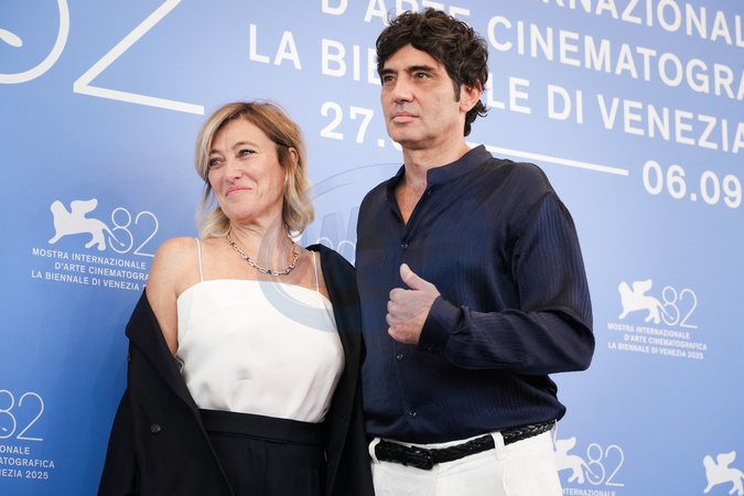 Valeria Bruni Tedeschi and Pietro Marcello attending the Duse photocall during the 82nd Venice International Film Festival on September 3, 2025 in Venice, Italy. (Photo by Lucia Sabatelli / Bestimage) EDITORIAL USE ONLY