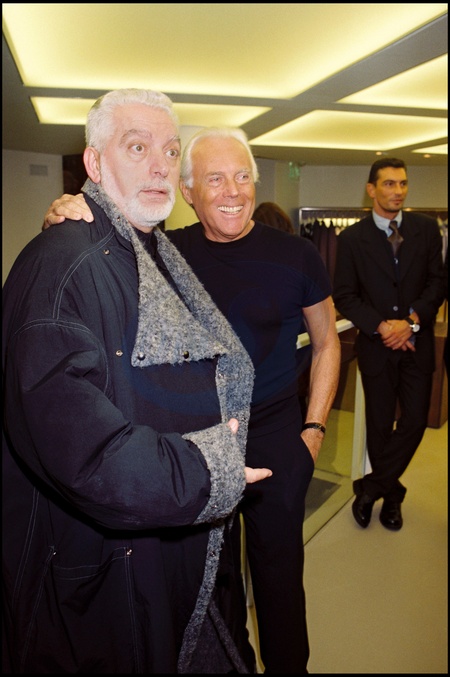 Rétro - Décès du styliste italien Giorgio Armani à l'âge de 91 ans - Info du 3 février 2023 - Décès - Le couturier Paco Rabanne est décédé à l'âge de 88 ans à Portsall dans le Finistère - ARCHIVES - PACO RABANNE ET GIORGIO ARMANI, A L'INAUGURATION DE LA BOUTIQUE "EMPORIO ARMANI" A PARIS
