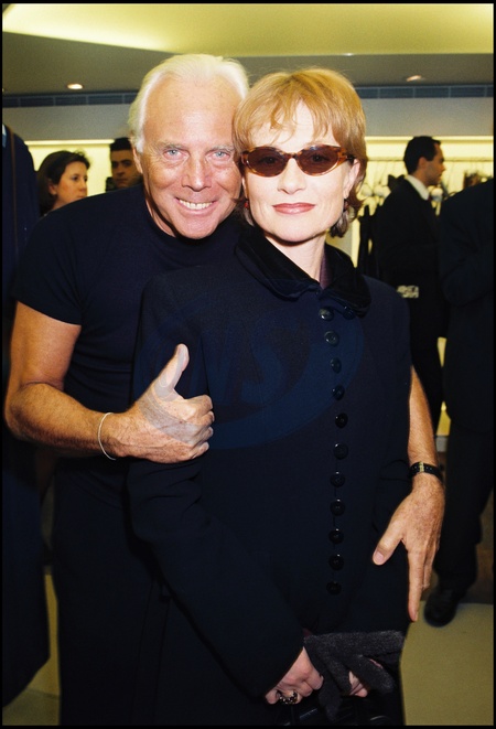 Rétro - Décès du styliste italien Giorgio Armani à l'âge de 91 ans - ARCHIVES - GIORGIO ARMANI ET ISABELLE HUPPERT A PARIS POUR L'INAUGURATION D' UNE BOUTIQUE BOULEVARD SAINT GERMAIN A PARIS