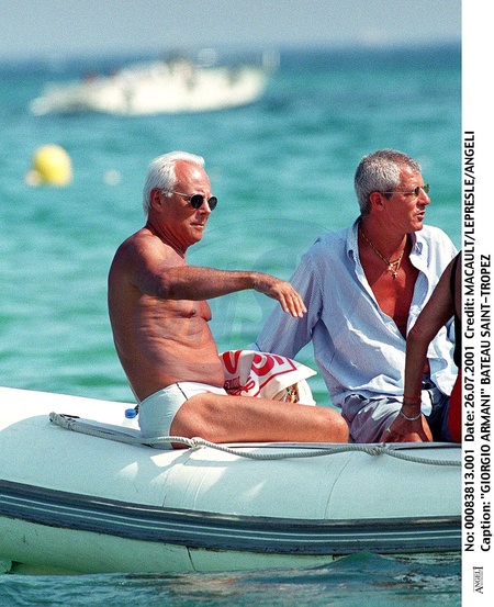 Rétro - Décès du styliste italien Giorgio Armani à l'âge de 91 ans - "GIORGIO ARMANI" BATEAU SAINT-TROPEZ MAILLOT DE BAIN "PLAN SERRE"
