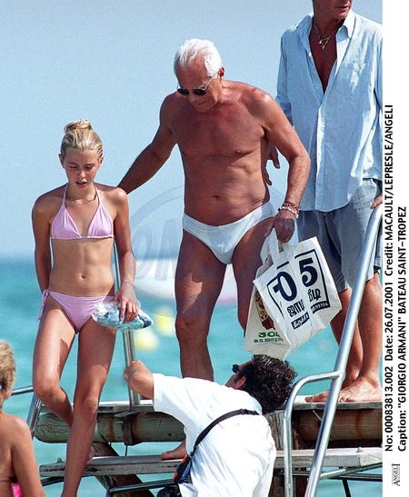 Rétro - Décès du styliste italien Giorgio Armani à l'âge de 91 ans - "GIORGIO ARMANI" BATEAU SAINT-TROPEZ MAILLOT DE BAIN "PLAN SERRE"