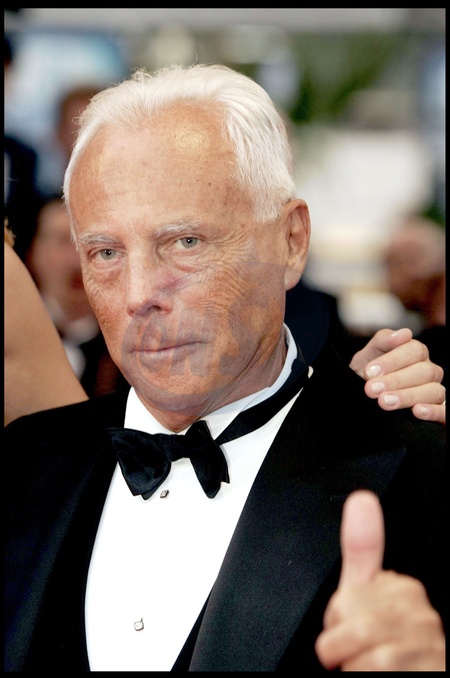 Rétro - Décès du styliste italien Giorgio Armani à l'âge de 91 ans - "GIORGIO ARMANI" MONTEE DES MARCHES DE LA CLOTURE DU 57EME FESTIVAL DU FILM DE CANNES 2004 "PORTRAIT" HOMME STYLISTE POUCE