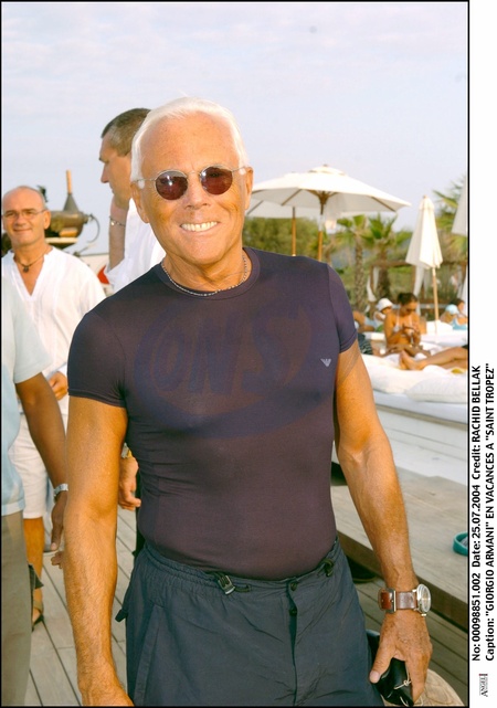 Rétro - Décès du styliste italien Giorgio Armani à l'âge de 91 ans - "GIORGIO ARMANI" EN VACANCES A "SAINT TROPEZ" STYLISTE "LUNETTES DE SOLEIL" "PLAN AMERICAIN"