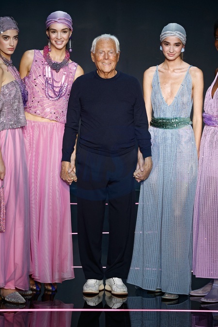 Le styliste Giorgio Armani - Défilé de mode printemps-été 2024 "Emporio Armani" lors de la fashion week de Milan. Le 21 septembre 2023 Fashion show spring-summer 2024 "Emporio Armani" during Milan fashion week. On september 21st 2023