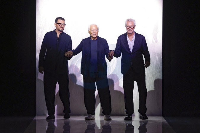 Gianluca Dell'Orco, Giorgio Armani, Leo Dell'Orco - Défilé de mode printemps-été 2025 "Giorgio Armani" lors de la fashion week de Milan. Le 17 juin 2024 Giorgio Armani fashion show during Milan Fashion Week Menswear Spring/Summer 2025. On June 17th 2024