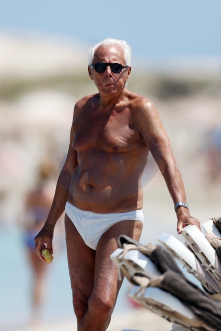 EXCLUSIVE: Giorgio Armani spends a day out on the beach in Formentera