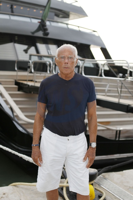 43216, IBIZA, SPAIN - Tuesday August 8 2010. **EXCLUSIVE PICTURES** EXCLUSIVE INTERVIEW AVAILABLE: Italian fashion legend Giorgio Armani shows off his new self-designed 65m superyacht called Main. The imposing yacht, which is currently moored in Ibiza, Spain, took 3 years to build. The famous stylist worked with designers and boat builders to create the exterior - he also created the interior by working alongside Studio Ortelli and it's trusted architects. **USA & CANADA USE ONLY** **FEE MUST BE AGREED PRIOR TO USAGE** **E-TABLET/IPAD & MOBILE PHONE APP PUBLISHING REQUIRES ADDITIONAL FEES**, Credit:SolarPix, PacificCoastNews.com / Avalon