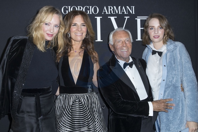 Roberta et Giorgio Armani et Uma Thurman et sa fille Maya Hawke en backstage du défilé de mode Haute-Couture printemps-été 2019 "Giorgio Armani Prive Haute Couture" à Paris le 22 janvier 2019. © Olivier Borde / Bestimage Backstage - Celebs attends the Giorgio Armani Prive Haute Couture Spring Summer 2019 show as part of Paris Fashion Week on January 22, 2019 in Paris
