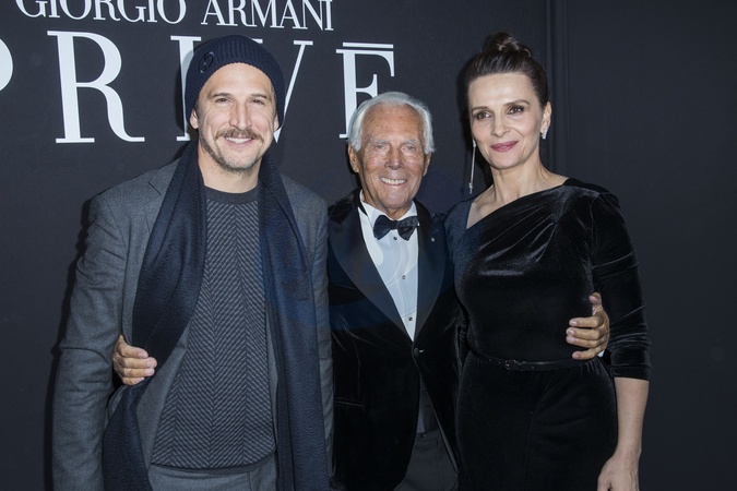Guillaume Canet, Giorgio Armani et Juliette Binoche en backstage du défilé de mode Haute-Couture printemps-été 2019 "Giorgio Armani Prive Haute Couture" à Paris le 22 janvier 2019. © Olivier Borde / Bestimage Backstage - Celebs attends the Giorgio Armani Prive Haute Couture Spring Summer 2019 show as part of Paris Fashion Week on January 22, 2019 in Paris