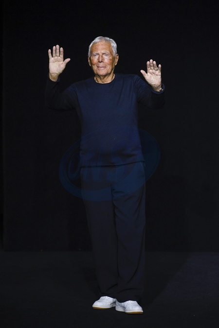 Le designer Giorgio Armani - Défilé Emporio Armani prêt-à-porter automne-hiver 2023/2023 lors de la Fashion Week de Milan (MFW), à Milan, Italie, le 23 février 2023. Emporio Armani fashion show during the Milan Fashion Week Womenswear Fall/Winter 2023/2023 in Milan, Italy, on February 23, 2023.