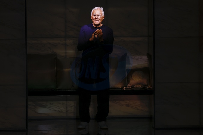Le styliste Giorgio Armani - Défilé de mode Femmes automne-hiver 2023/2024 "Giorgio Armani" lors de la fashion week de Milan. Le 26 février 2023 Giorgio Armani F/W 2023-2024 Women fashion show, during the fashion week in Milano. On February 26th 2023