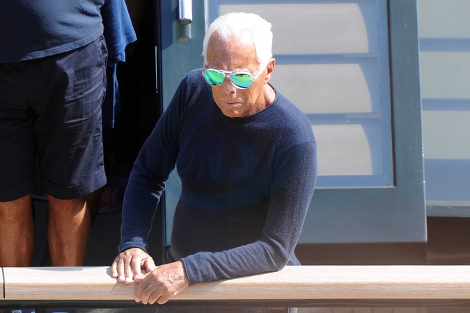 CODE: POLY FOTOTREPORTOFINO - 07/09/2014 FASHION DESIGNER GIORGIO ARMANI ON HIS YACHT MAIN IN PORTOFINO. GIORGIO HAS LUNCH WITH HIS FRIEND PUNY, Credit:Look Press Agency/Look Press / Avalon