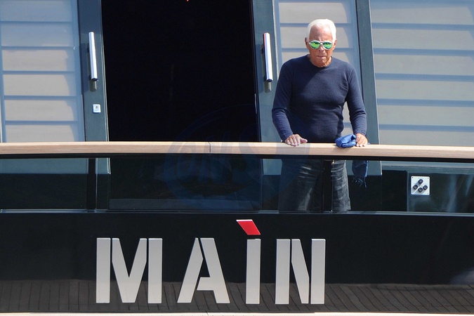 CODE: POLY FOTOTREPORTOFINO - 07/09/2014 FASHION DESIGNER GIORGIO ARMANI ON HIS YACHT MAIN IN PORTOFINO. GIORGIO HAS LUNCH WITH HIS FRIEND PUNY, Credit:Look Press Agency/Look Press / Avalon