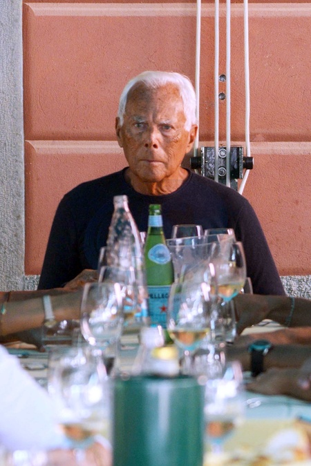 CODE: POLY FOTOTREPORTOFINO - 07/09/2014 FASHION DESIGNER GIORGIO ARMANI ON HIS YACHT MAIN IN PORTOFINO. GIORGIO HAS LUNCH WITH HIS FRIEND PUNY, Credit:Look Press Agency/Look Press / Avalon