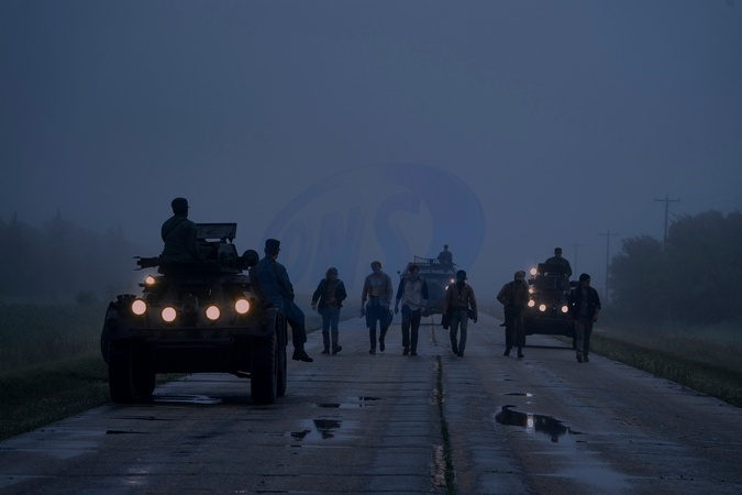 Charlie Plummer as Barkovitch, Garrett Wareing as Stebbins, Cooper Hoffman as Garraty, David Jonsson as McVries, Tut Nyuot as Baker, and Joshua Odjick as Parker in "The Long Walk" (2025)., Credit:Murray Close/Lionsgate / Avalon