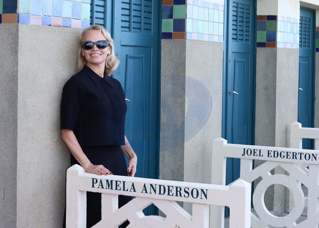 Pamela Anderson inaugure sa cabine sur les planches de Deauville lors du 51éme Festival du Cinema Américain de Deauville le 5 Septembre 2025. © Denis Guignebourg/Bestimage Pamela Anderson inaugurates her cabin on the Deauville stage during the 51st Deauville American Film Festival on September 5, 2025.