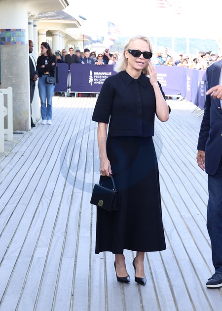 Pamela Anderson inaugure sa cabine sur les planches de Deauville lors du 51éme Festival du Cinema Américain de Deauville le 5 Septembre 2025. © Denis Guignebourg/Bestimage Pamela Anderson inaugurates her cabin on the Deauville stage during the 51st Deauville American Film Festival on September 5, 2025.