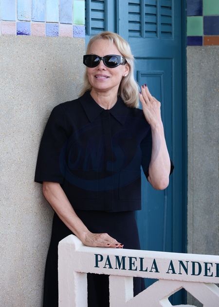 Pamela Anderson inaugure sa cabine sur les planches de Deauville lors du 51éme Festival du Cinema Américain de Deauville le 5 Septembre 2025. © Denis Guignebourg/Bestimage Pamela Anderson inaugurates her cabin on the Deauville stage during the 51st Deauville American Film Festival on September 5, 2025.