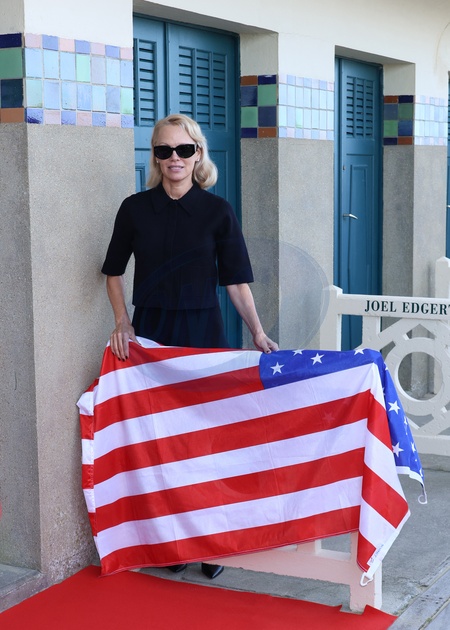 Pamela Anderson inaugure sa cabine sur les planches de Deauville lors du 51éme Festival du Cinema Américain de Deauville le 5 Septembre 2025. © Denis Guignebourg/Bestimage Pamela Anderson inaugurates her cabin on the Deauville stage during the 51st Deauville American Film Festival on September 5, 2025.