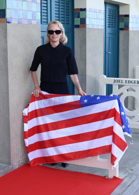 Pamela Anderson inaugure sa cabine sur les planches de Deauville lors du 51éme Festival du Cinema Américain de Deauville le 5 Septembre 2025. © Denis Guignebourg/Bestimage Pamela Anderson inaugurates her cabin on the Deauville stage during the 51st Deauville American Film Festival on September 5, 2025.