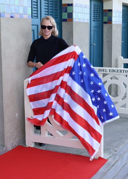 Pamela Anderson inaugure sa cabine sur les planches de Deauville lors du 51éme Festival du Cinema Américain de Deauville le 5 Septembre 2025. © Denis Guignebourg/Bestimage Pamela Anderson inaugurates her cabin on the Deauville stage during the 51st Deauville American Film Festival on September 5, 2025.
