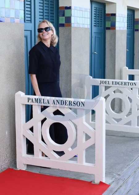 Pamela Anderson inaugure sa cabine sur les planches de Deauville lors du 51éme Festival du Cinema Américain de Deauville
