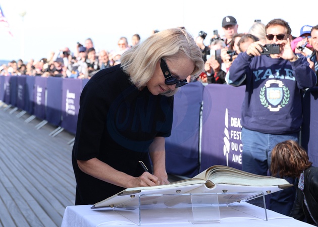 Pamela Anderson inaugure sa cabine sur les planches de Deauville lors du 51éme Festival du Cinema Américain de Deauville le 5 Septembre 2025. © Denis Guignebourg/Bestimage Pamela Anderson inaugurates her cabin on the Deauville stage during the 51st Deauville American Film Festival on September 5, 2025.