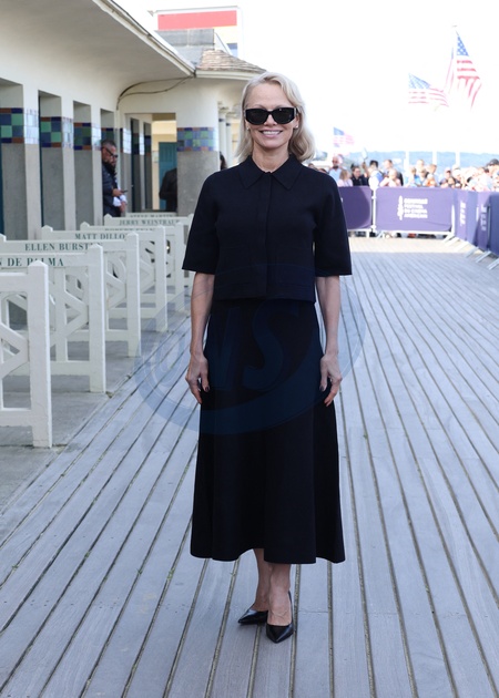 Pamela Anderson inaugure sa cabine sur les planches de Deauville lors du 51éme Festival du Cinema Américain de Deauville le 5 Septembre 2025. © Denis Guignebourg/Bestimage Pamela Anderson inaugurates her cabin on the Deauville stage during the 51st Deauville American Film Festival on September 5, 2025.