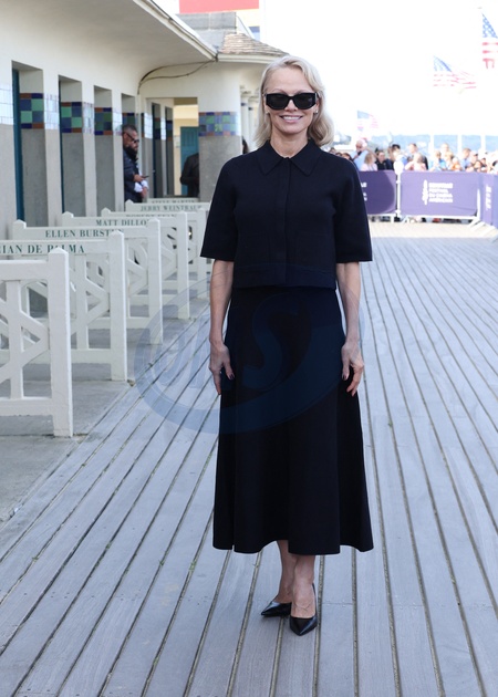 Pamela Anderson inaugure sa cabine sur les planches de Deauville lors du 51éme Festival du Cinema Américain de Deauville le 5 Septembre 2025. © Denis Guignebourg/Bestimage Pamela Anderson inaugurates her cabin on the Deauville stage during the 51st Deauville American Film Festival on September 5, 2025.