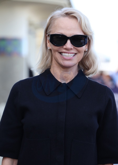 Pamela Anderson inaugure sa cabine sur les planches de Deauville lors du 51éme Festival du Cinema Américain de Deauville le 5 Septembre 2025. © Denis Guignebourg/Bestimage Pamela Anderson inaugurates her cabin on the Deauville stage during the 51st Deauville American Film Festival on September 5, 2025.