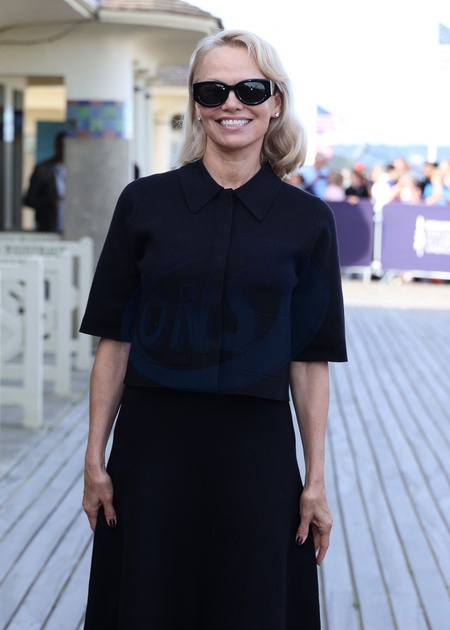 Pamela Anderson inaugure sa cabine sur les planches de Deauville lors du 51éme Festival du Cinema Américain de Deauville le 5 Septembre 2025. © Denis Guignebourg/Bestimage Pamela Anderson inaugurates her cabin on the Deauville stage during the 51st Deauville American Film Festival on September 5, 2025.