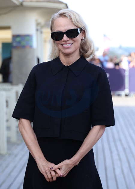 Pamela Anderson inaugure sa cabine sur les planches de Deauville lors du 51éme Festival du Cinema Américain de Deauville le 5 Septembre 2025. © Denis Guignebourg/Bestimage Pamela Anderson inaugurates her cabin on the Deauville stage during the 51st Deauville American Film Festival on September 5, 2025.