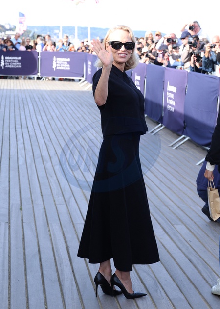 Pamela Anderson inaugure sa cabine sur les planches de Deauville lors du 51éme Festival du Cinema Américain de Deauville le 5 Septembre 2025. © Denis Guignebourg/Bestimage Pamela Anderson inaugurates her cabin on the Deauville stage during the 51st Deauville American Film Festival on September 5, 2025.