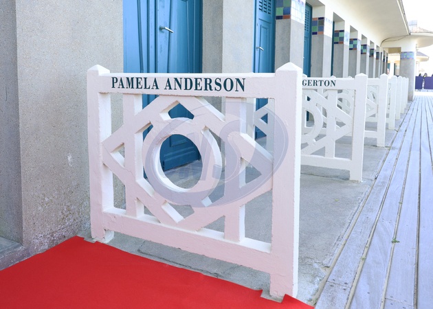 Pamela Anderson inaugure sa cabine sur les planches de Deauville lors du 51éme Festival du Cinema Américain de Deauville