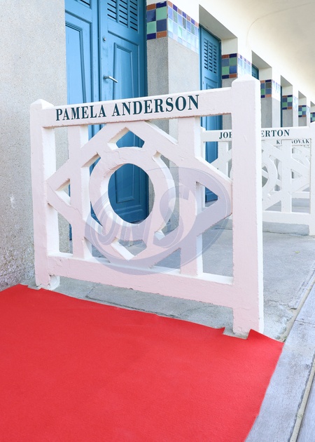 Pamela Anderson inaugure sa cabine sur les planches de Deauville lors du 51éme Festival du Cinema Américain de Deauville