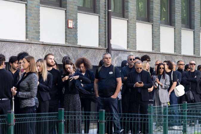 Giorgio Armani's funeral chapel. In the photo, the queue to enter the chapel of rest. The chapel of rest was set up in the Armani Teatro, the venue for many fashion shows. Milan, Italy 06 September 2025., Credit:Rossella Papetti / Avalon