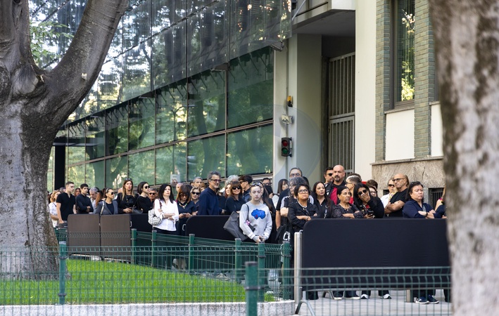 Giorgio Armani's funeral chapel. In the photo, the queue to enter the chapel of rest. Milan, Italy 06 September 2025., Credit:Rossella Papetti / Avalon