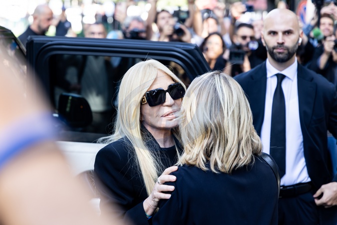 Giorgio Armani's funeral chapel, Donatella Versace arrives