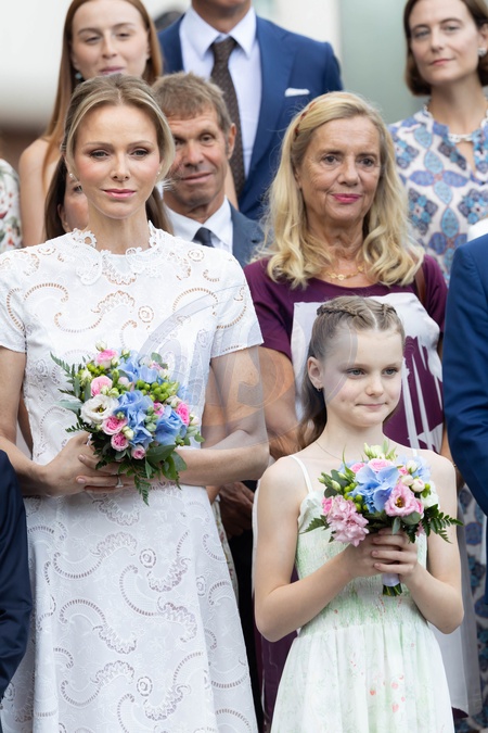 No Tabloïds - No Mail Online - Only for OK, Hello, Grazia in UK- TT.SS.HH. Prince Albert II (Le prince Albert II de Monaco) and Princess Charlene of Monaco (La princesse Charlène de Monaco) with Their Children H.S.H. Prince Jacques (Le prince Jacques de Monaco, marquis des Baux) and H.S.H. Princess Gabriella (La princesse Gabriella de Monaco, comtesse de Carladès) and Mélanie-Antoinette de Massy attend the traditional ‘Pique-nique des Monégasques' (U Cavagnetu) at the Princess Antoinette Park, in Monaco. © Olivier Huitel/Pool Monaco/Bestimage